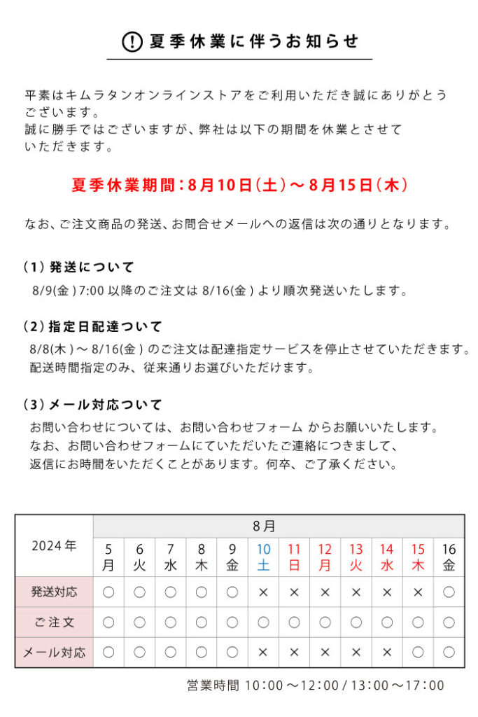 夏季休業のお知らせ