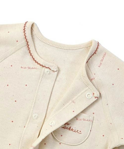 手触りのとても柔らかなオーガニックコットン素材を使用。ピンク色の水玉プリント柄をあしらったスムース生地が特徴的で、シンプルなデザインの中にも女の子らいいイメージ漂う2WAYドレスです。