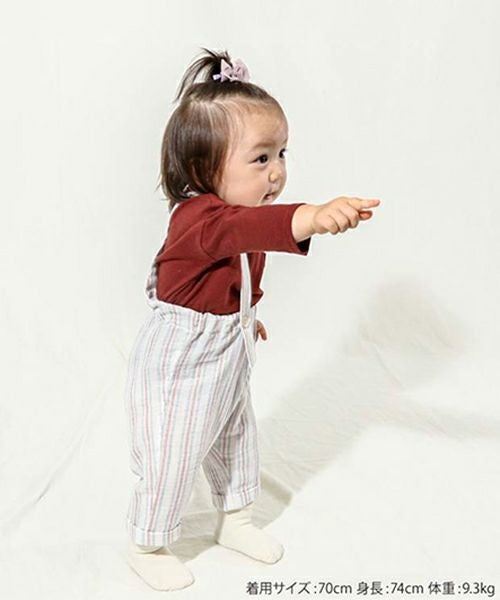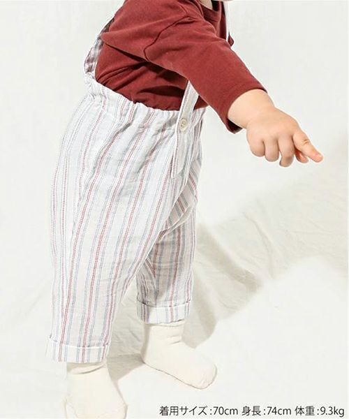 ■ブランド Piccolo ■アイテム サロペット ■素材 綿100% Wガーゼ先染めマルチストライプ×ヒッコリーニット ■サイズ 70/80/90/95