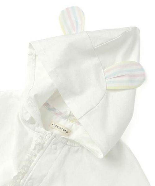 紫外線をカットする効果のある生地を使用したUVカットポンチョ♪日よけ対策はもちろん、サッと羽織れるので冷房や体温調節にも大活躍♪取り外し可能なうさぎちゃんマスコットやうさ耳の付いたフードがキュートで贈り物にもぴったりです♪