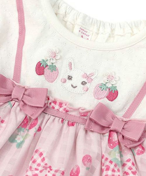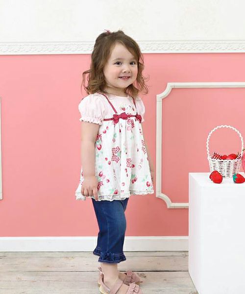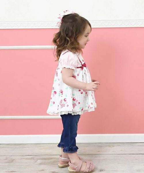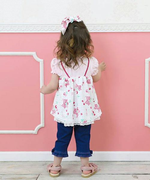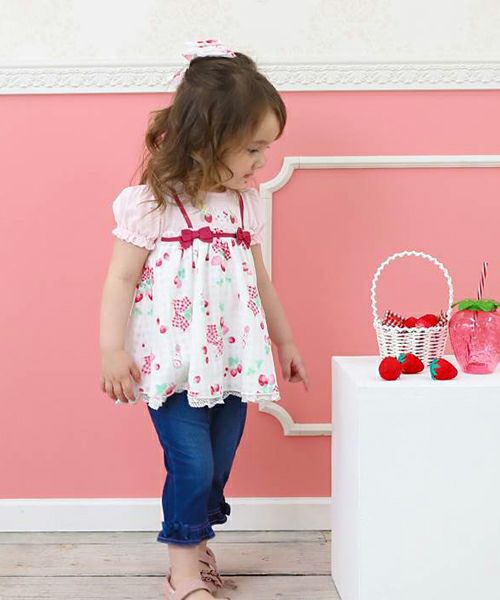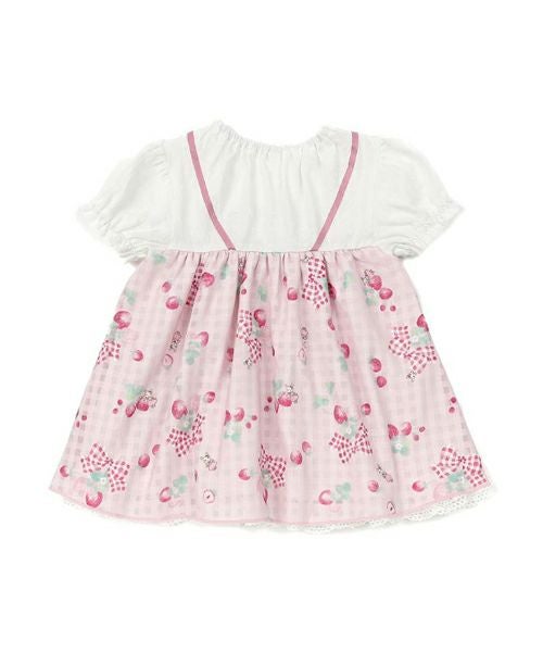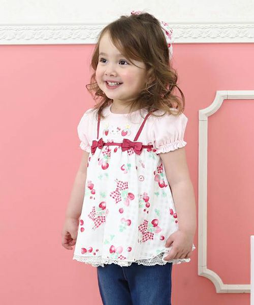 コーディネートの主役になること間違いなし!チェックのシフォンにいちごのプリントがキュートなレイヤードスタイルのチュニック♪胸元のリボンがよりラブリーな印象に♪コーデを考えなくても可愛く決まる1枚です。デザイナーいちおしアイテム♪嬉しいお名前タグ付き!