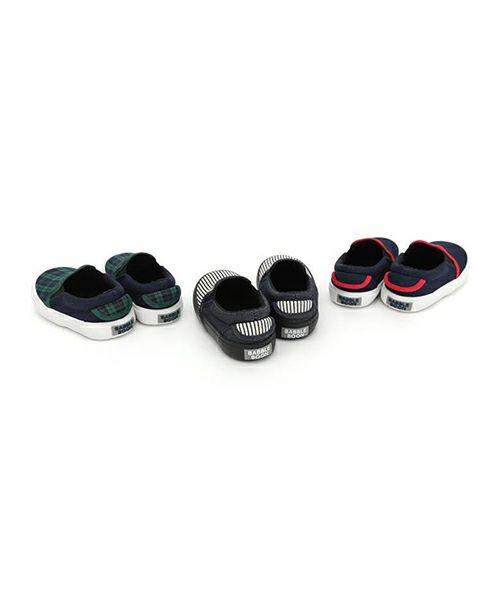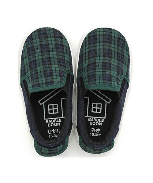 ■ブランド BABBLE BOON ■アイテム スリッポン ■素材 グリーン・ネイビーブルー…甲材/綿 底材/合成底 ブルー…甲材/綿・ポリエステル 底材/合成底 タータンチェック×ヒッコリー×キャンバス×デニム ■サイズ 13/14/15/16/17/18/19/20