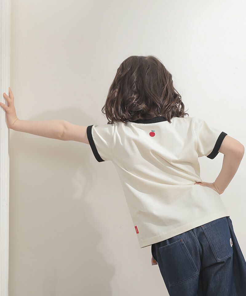ゲームをイメージしたフルーツモチーフにわくわく♪リンガーTシャツのレトロなムードとも相性抜群♪コーディネートのポイントにも☆程よいゆとりのシルエットなのでコーディネートしやすくサラリとした生地感も素敵です。