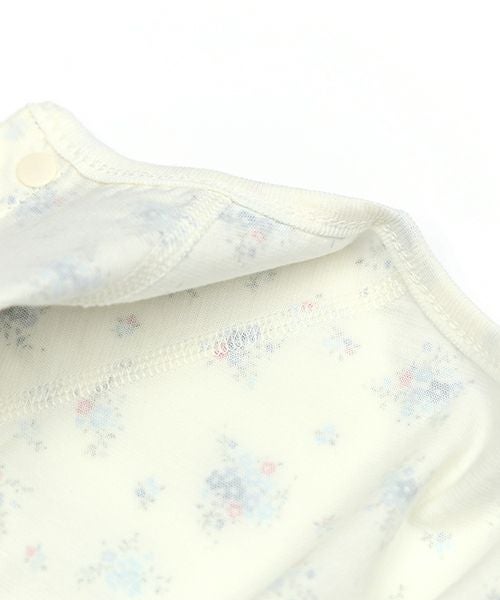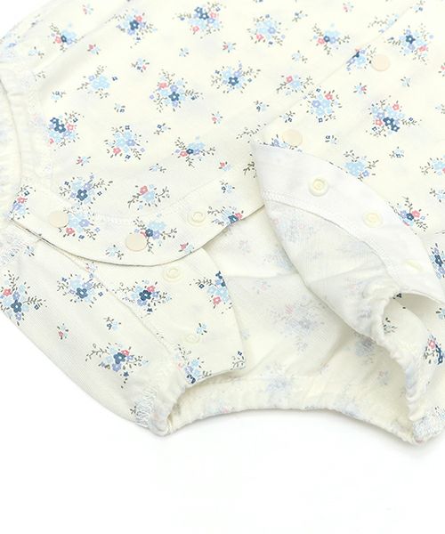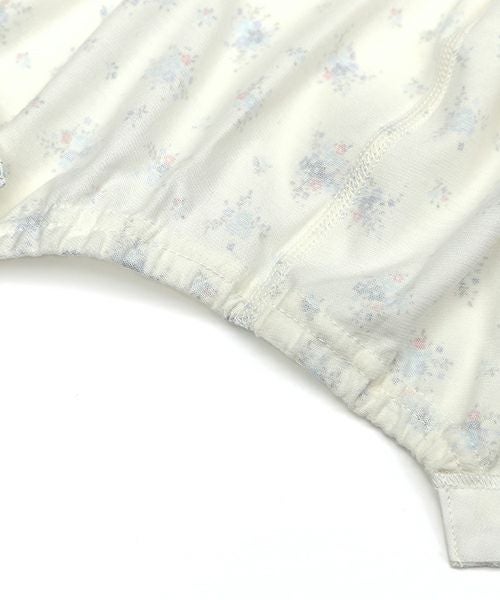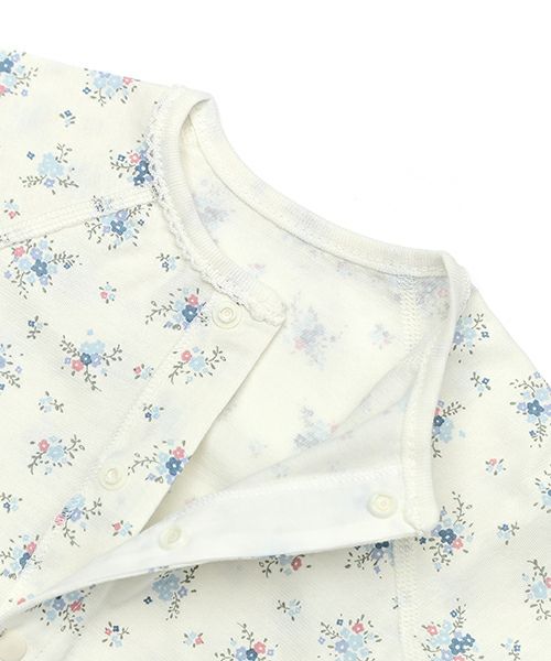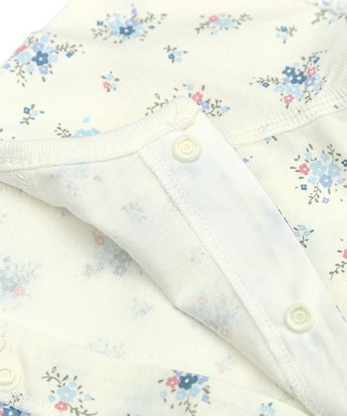 夏の暑い季節も快適に過ごせる、さらっと爽やかな天竺素材を使用しています。お着替えしやすい前あき仕様♪上品な小花柄で女の子にぴったりです。