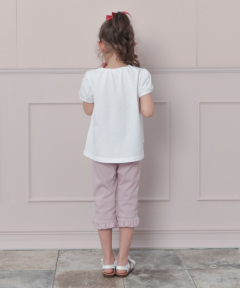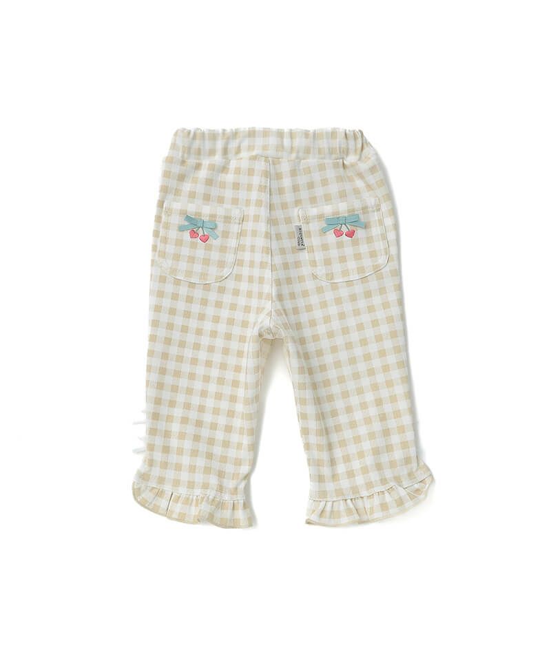 サクランボ刺繍が効いた程よいスリムシルエットの7分丈パンツ☆シルエットをキープする伸縮性のあるお素材を使用しているので、動きやすさもバッチリです☆シーズン通して長くご使用いただける7分丈パンツは出番の多さにも期待♪