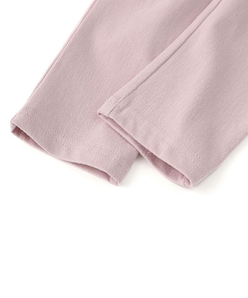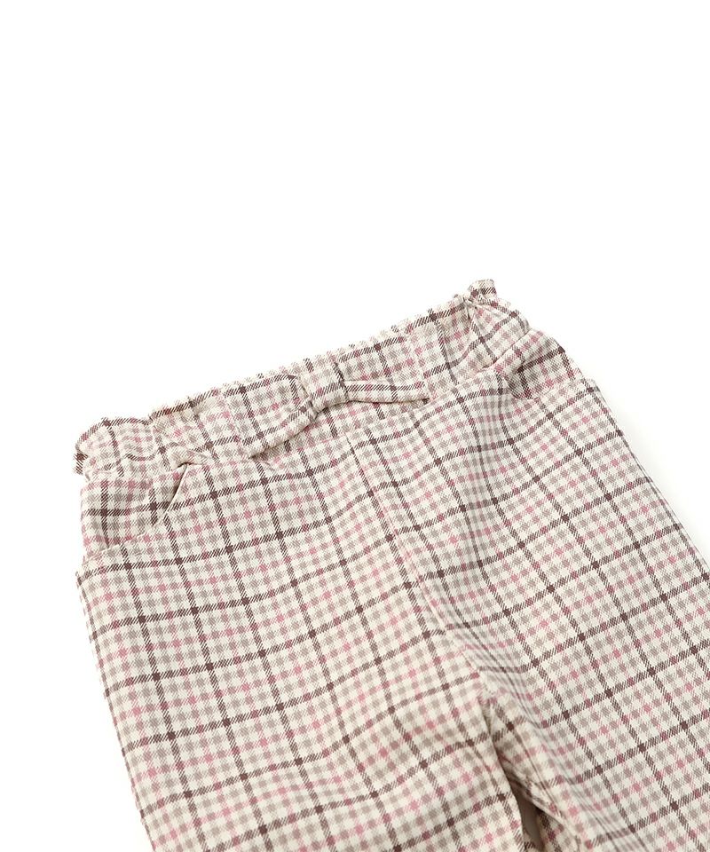 フロントリボンがキュートなパンツは、伸縮性のあるツイル素材を使用しています。コーデのポイントになるチェックや女の子の好きなキャンディカラー、合わせやすいネイビーの嬉しいカラー展開もポイント。程よいスリムシルエットでデイリーにもお出かけにも大活躍するアイテムです。