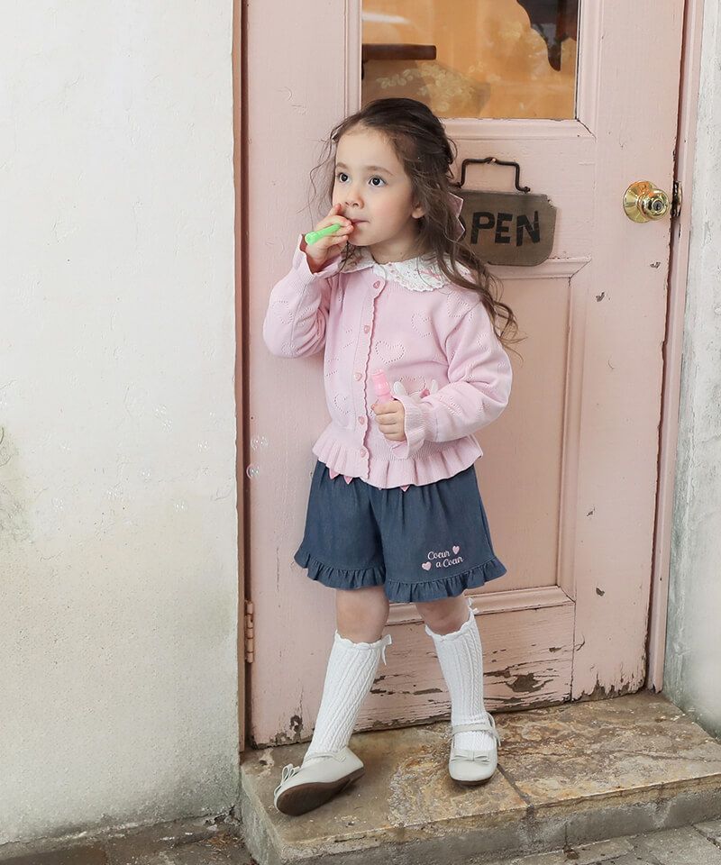 coeur a coeur ハート透かし編みコットンニットカーディガン