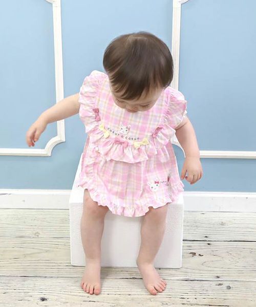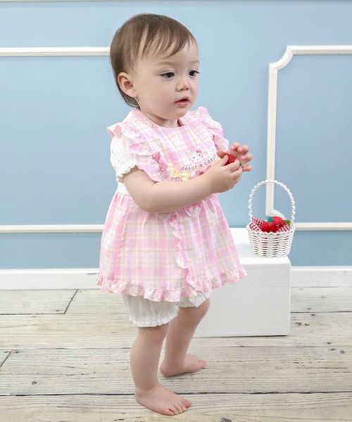 ■ブランド coeur a coeur ■アイテム スタイ ■素材 チェック生地部分/綿100% 裏本体/綿77%・ポリエステル23% リボンモチーフ/ポリエステル100% 先染めチェック×パイル×グログランリボン ■サイズ ベビー ■洗濯表示