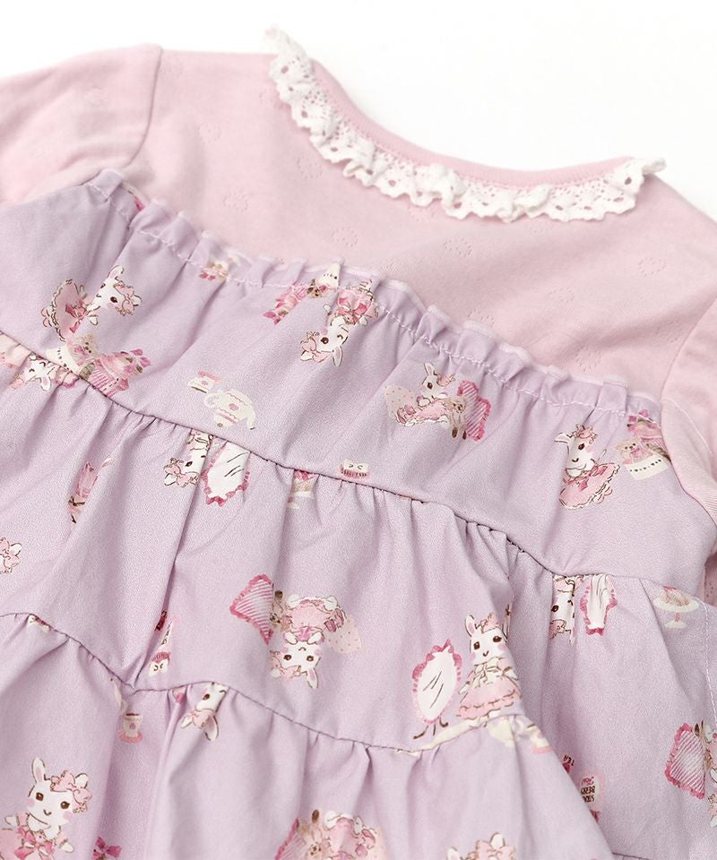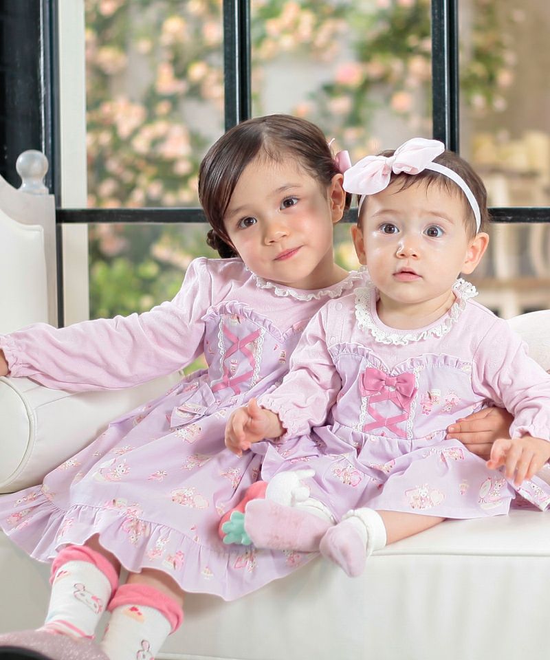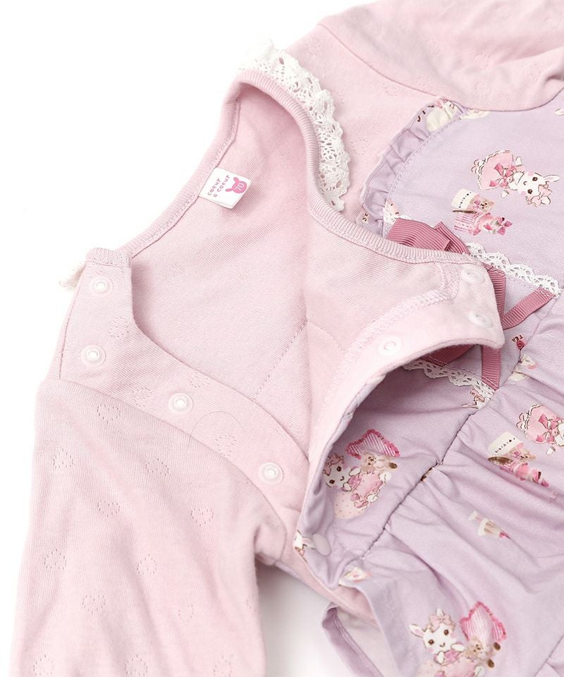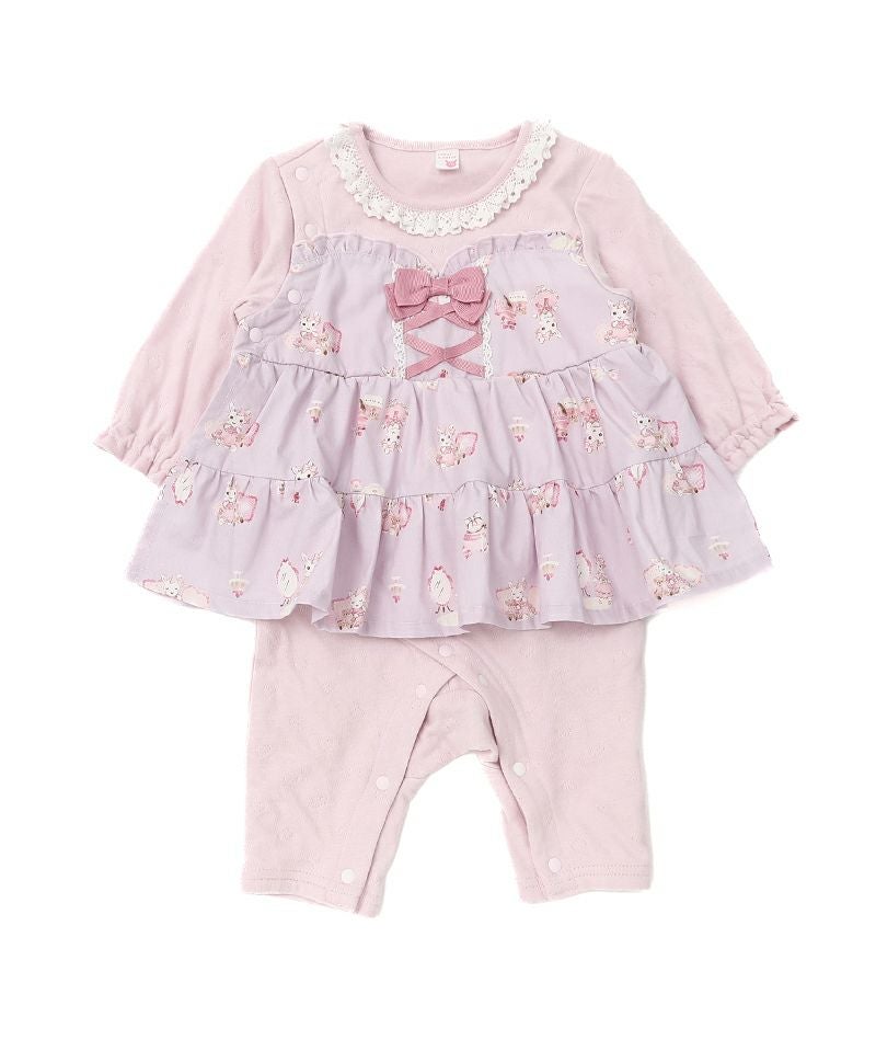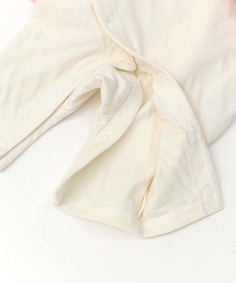 ■カラー展開:ラベンダー/ピンク ※前にポケットがあります。 モデル身長:70cm / 着用サイズ:70size ※画面上の色はブラウザや設定により、実物とは異なる場合がございます。
