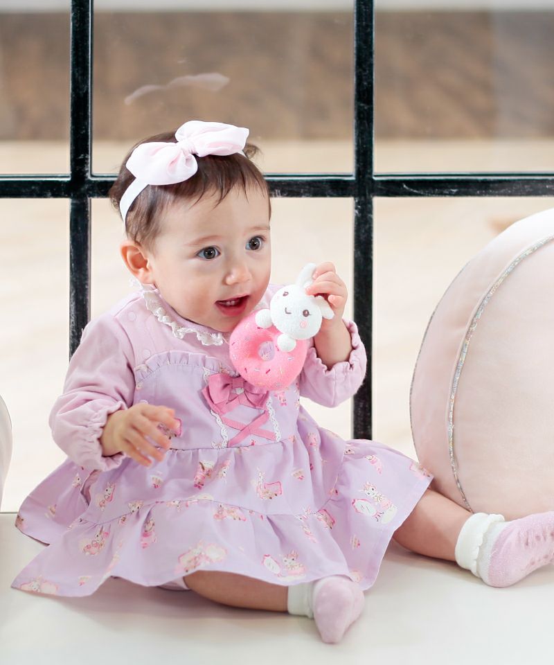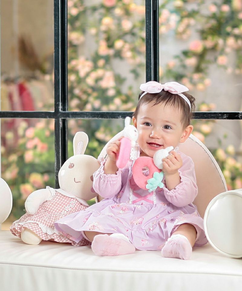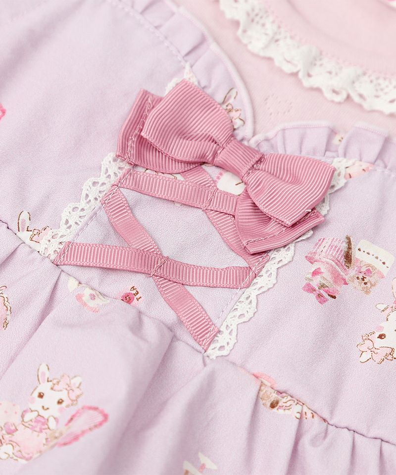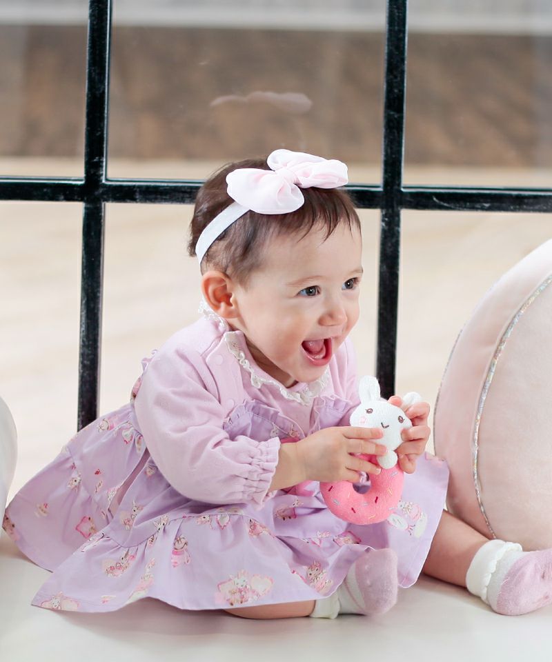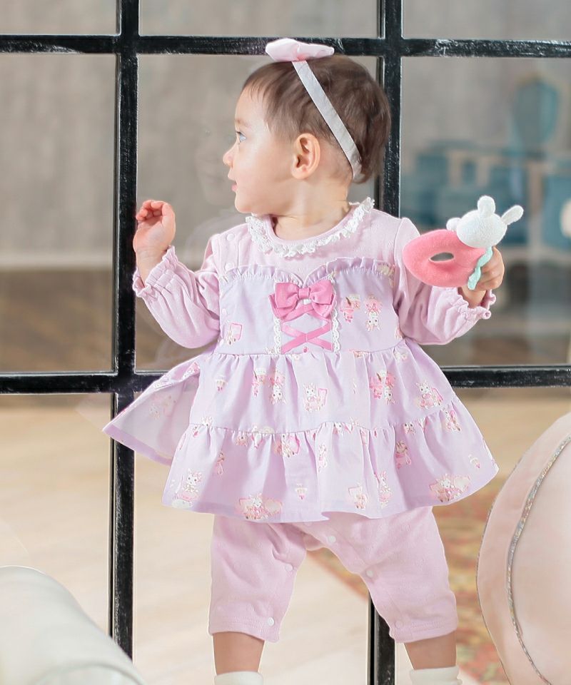 ■カラー展開:ラベンダー/ピンク ※前にポケットがあります。 モデル身長:70cm / 着用サイズ:70size ※画面上の色はブラウザや設定により、実物とは異なる場合がございます。