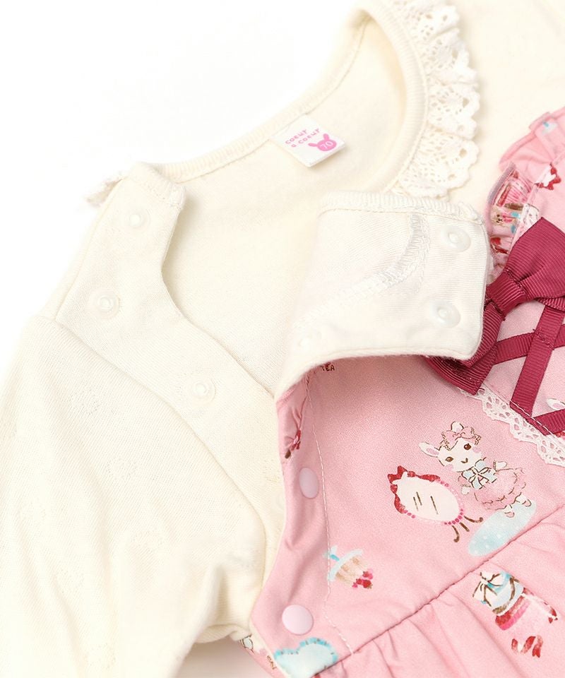 ■ブランド coeur a coeur ■アイテム カバーオール ■素材 本体/綿100% 衿ぐりレース部分/綿97%・ポリウレタン3% リボン部分/ポリエステル100% ジャガード接結×ビエラ×フライス ■サイズ 70/80 ■洗濯表示 取扱い表示記号について