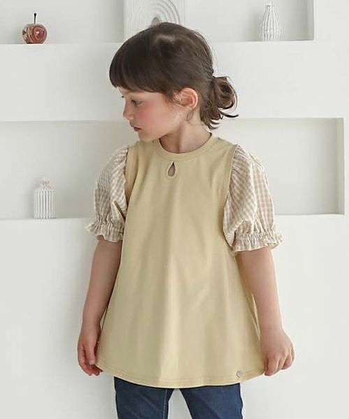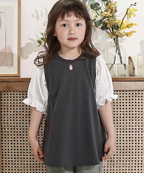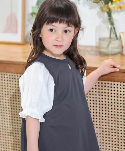 袖の部分は涼しそうな生地でボリュームがあってかわいいです。 デザインも素敵でお気に入りです。 後ろのボタンもおしゃれなのですが、娘は髪の毛が引っかかってしまうので、残念ながら取り外して着ています。