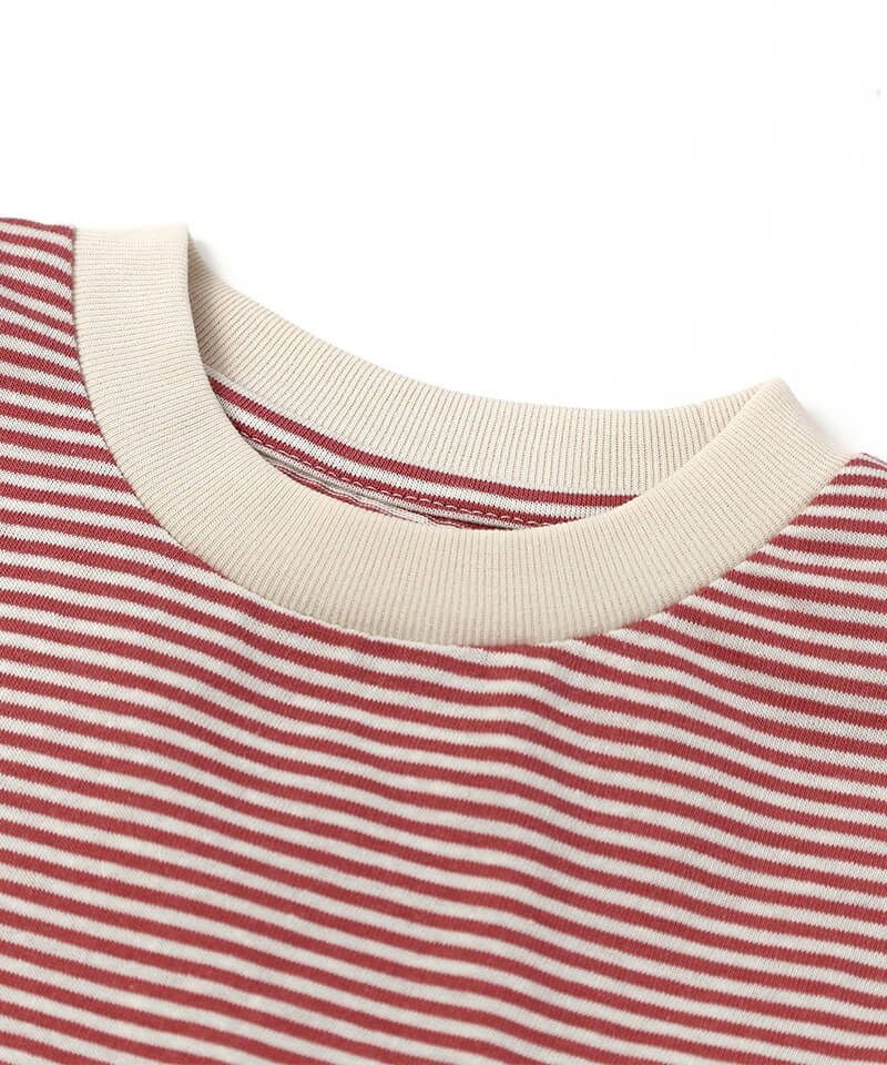 カーブした肩から袖にかけてのラインが可愛いTシャツです。シャリ感ある綿の強撚天竺を使用しているので肌離れが良く、吸水性も兼ね備えた点もおすすめポイントです。