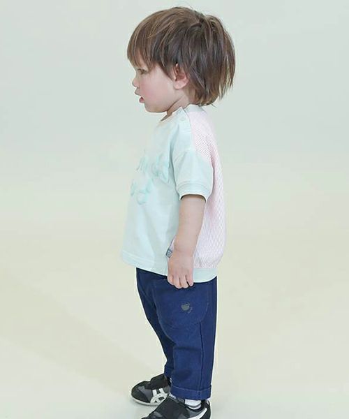 ■ブランド n.o.u.s ■アイテム 半袖Tシャツ ■素材 本体/綿100% 衿布/綿93%・ポリウレタン7% ミントグリーン…後身頃/ポリエステル97%・ポリウレタン3% ネイビーブルー…後身頃/綿53%・ポリエステル47% ストレッチミニ裏毛×サッカーストライプ×サッカーギンガムチェック×スパンテレコ ■サイズ 70/80/90 ■洗濯表示