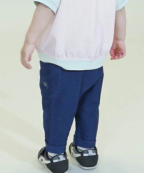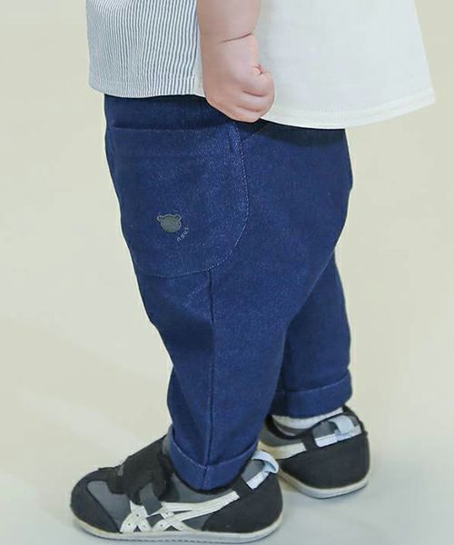 くま耳がワンポイント後ろに付いた、こどもらしいパンツ!伸縮性のある生地を使用してるので、動きやすい着やすい1枚です。