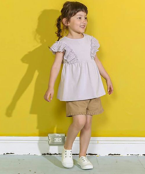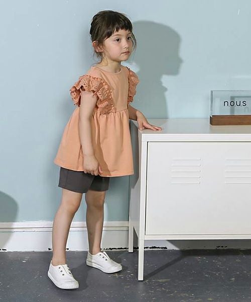 ■ブランド n.o.u.s ■アイテム 半袖Tシャツ ■素材 本体・レース/綿100% 衿ぐり・袖口部分/綿95%・ポリウレタン5% 天竺×スパンフライス×カットワークレース ■サイズ 80/90/100/110/120/130/140 ■洗濯表示