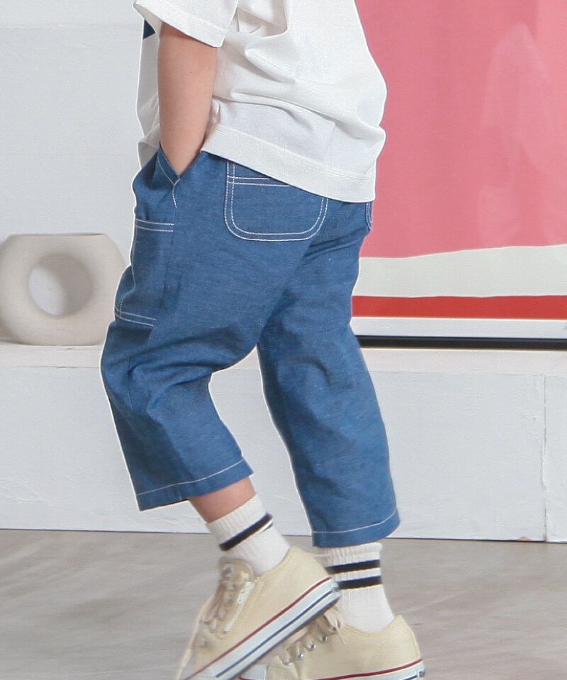 夏でもお声の多い7分丈パンツ☆さらりと軽い布帛素材と程よいゆとり設計で涼しい着心地に仕上げました。膝下からテーパードしたシルエットと、ちょっぴりワークテイストなステッチがクールなポイントに★