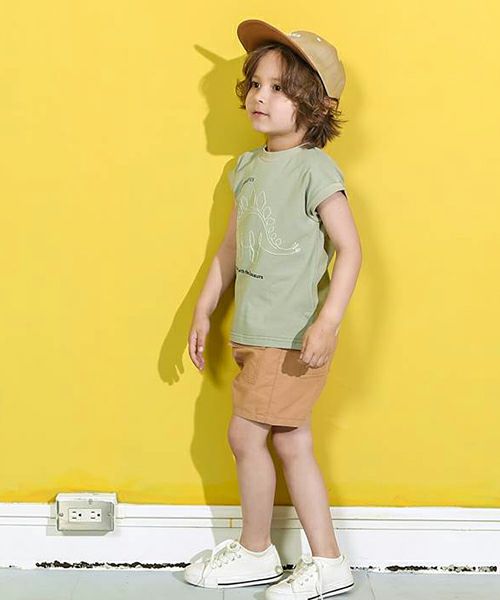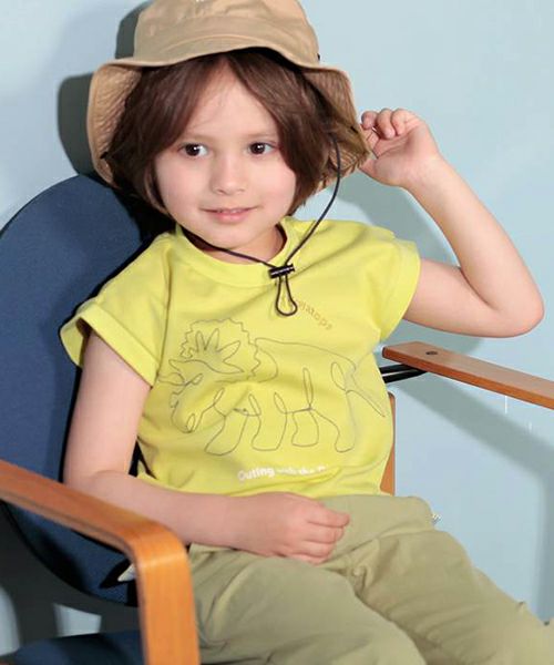 ■カラー展開:イエロー/カーキ ※お名前タグ付き ※この商品はUVケア・UV対策に効果的な商品です。紫外線の透過率が低い素材もしくは低くする加工をして紫外線の遮蔽(カット)率を高めています。 モデル身長:110cm / 着用サイズ:110size ※画面上の色はブラウザや設定により、実物とは異なる場合がございます。