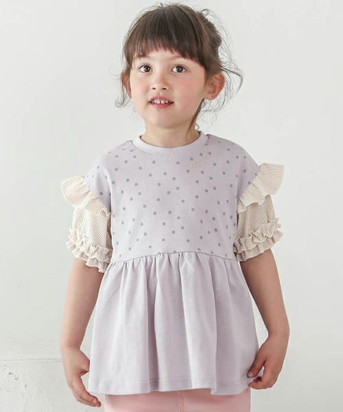 ■ブランド n.o.u.s ■アイテム 半袖Tシャツ ■素材 オフホワイト…本体/綿100% 衿部分/綿95%・ポリウレタン5% パープル…本体/綿100% 袖・フリル部分/ポリエステル98%・ポリウレタン2% 衿部分/綿95%・ポリウレタン5% 天竺×スパンフライス< ■サイズ 80/90/100/110/120/130/140 ■洗濯表示