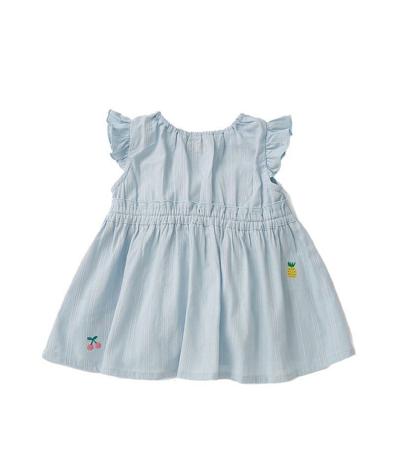 1つ1つが可愛いフルーツ刺繍をちりばめたチュニック☆ニュアンスのあるストライプ織りの布帛素材がとっても爽やかな印象です。長めのサイズをレギンスに合わせたり、ジャストサイズでショートパンツやボリュームデニムと合わせたり♪幅広いコーデを楽しんでいただけるアイテムです★