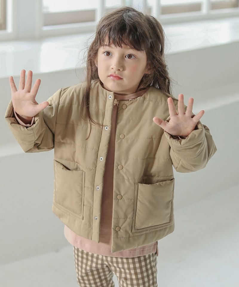 ■カラー展開:ベージュ/ネイビーブルー ※お名前タグ付き ※前にポケットがあります。 ※この商品は生地に撥水加工(はっ水加工)を施しています。繰り返し洗濯するとはっ水効果が低下します。 また、雨天時の長時間の使用は縫い目及び布部分より、中へ水が入る場合がありますのでご注意ください。 ※FELLEX綿を使用しています。熱効果の高い中空繊維と極細ファイバーが絡み合い、体温を逃さずに保温効果を発揮します。 運動時の汗には蒸散効果を発揮し体温の上りすぎを抑え快適な暖かさにコントロールしてくれる中綿です。 水に濡れても保温効果を保ち耐久性にも優れへたりの少ない素材です。 モデル身長:110cm / 着用サイズ:110size モデル身長:114cm / 着用サイズ:110siz ※画面上の色はブラウザや設定により、実物とは異なる場合がございます。