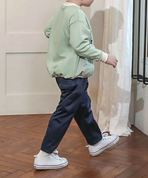 ■カラー展開:カーキ/ネイビーブルー モデル身長:111.5cm / 着用サイズ:110size ※前と後ろにポケットがあります。 ※画面上の色はブラウザや設定により、実物とは異なる場合がございます。