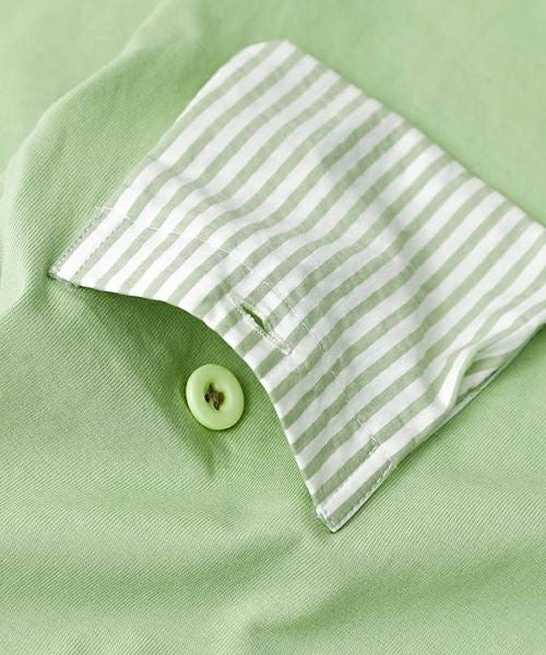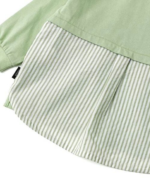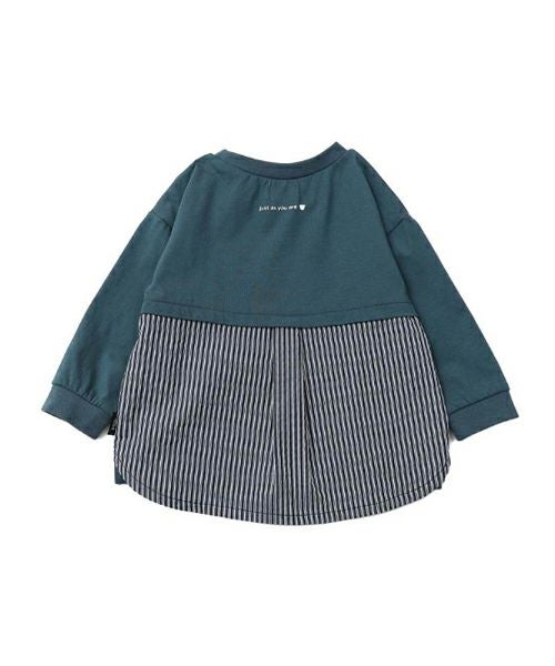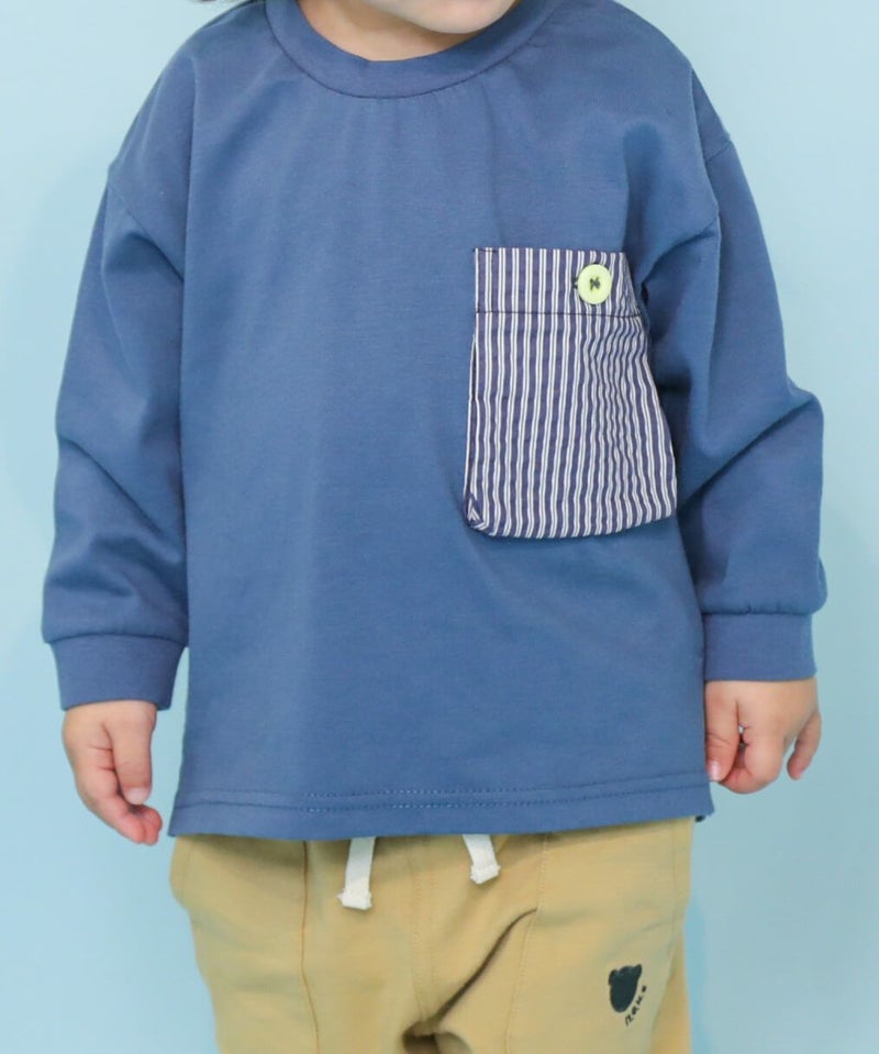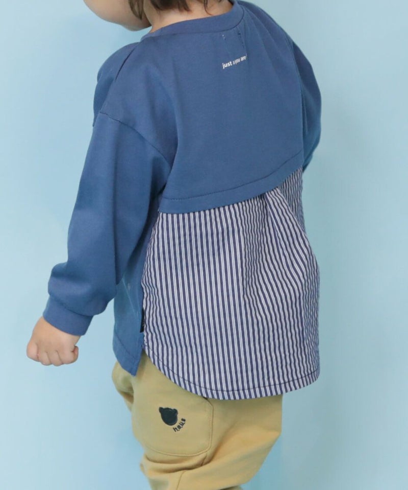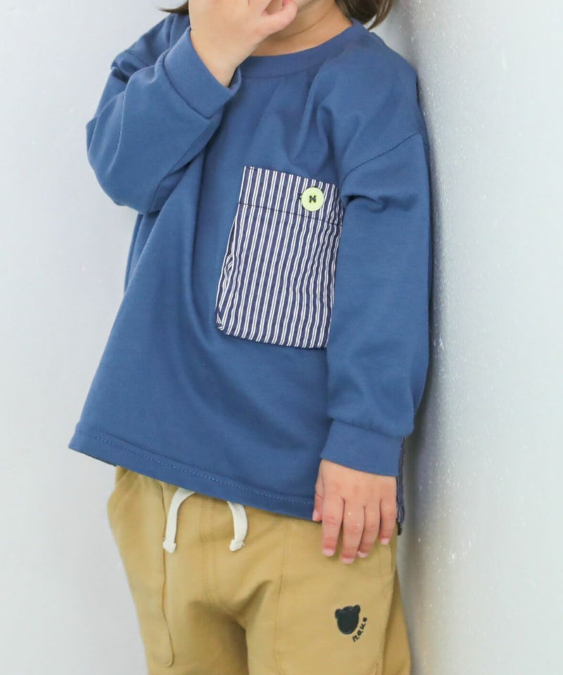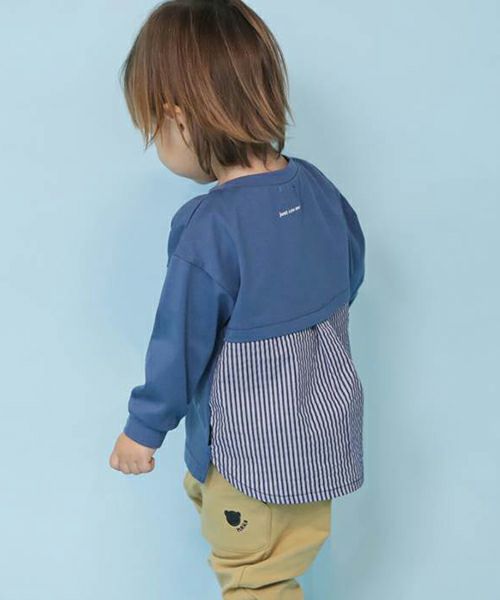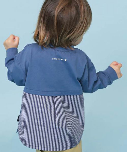 ■ブランド n.o.u.s ■アイテム その他トップス ■素材:本体/綿100% 衿ぐり・袖口布部分/綿95%・ポリウレタン5% カーキ…ストライプ布部分/ポリエステル74%・綿26% ブルー…ストライプ布部分/綿83%・ナイロン15%・ポリウレタン2% ミドル天竺×スパンフライス ■サイズ 70/80/90