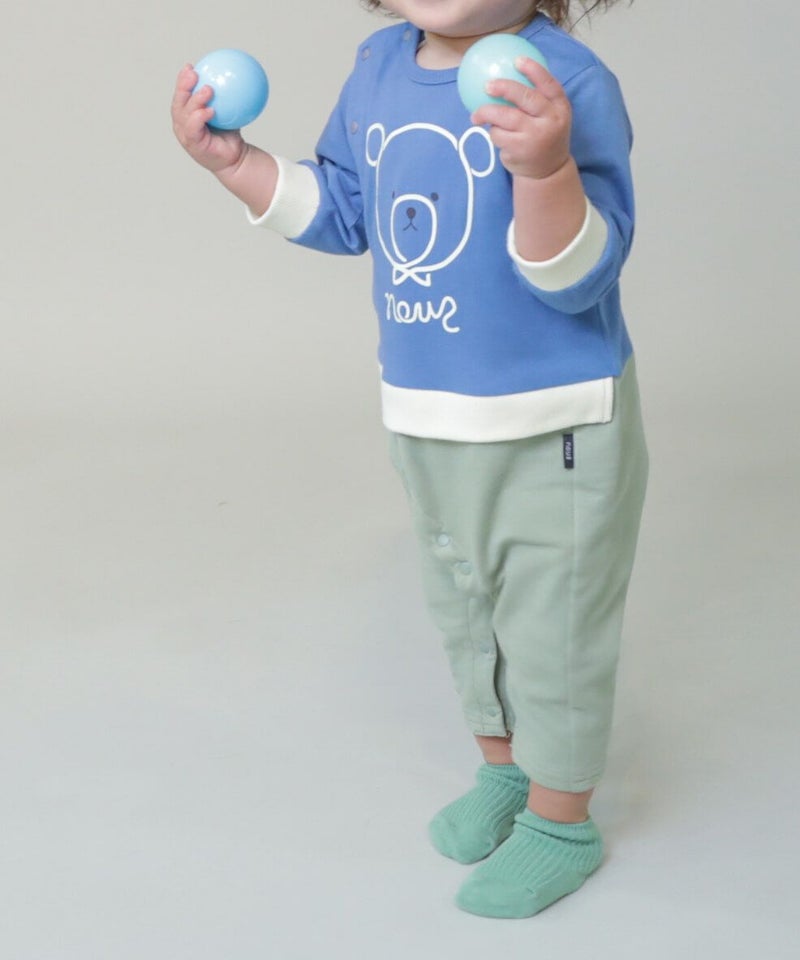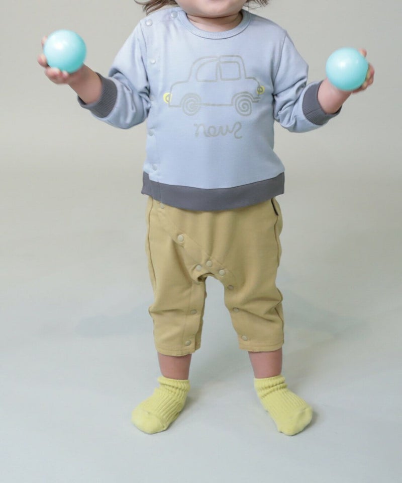 遊び心のあるイラストのカバーオール。お兄ちゃんとのボーダーコーデも楽しめそう!プレゼントにもおすすめです。