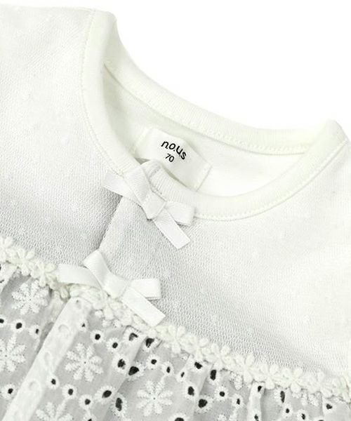 ■ブランド n.o.u.s ■アイテム カバーオール ■素材 本体/ポリエステル62%・綿31%・ポリウレタン7% 前後ヨーク・袖部分/綿100% スカート部分/綿100% レース部分/綿100% 前ヨークチュール部分/ポリエステル100% 天竺×ストレッチリブ ■サイズ 70/80 ■洗濯表示