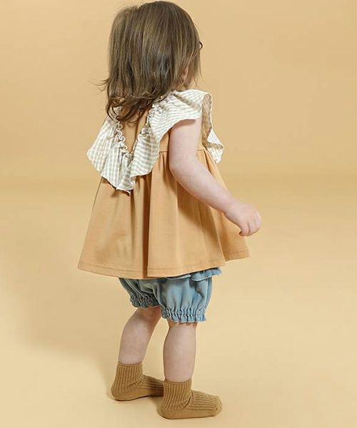 さらっとしている天竺にフリルが立体的についた赤ちゃんらしい可愛らしいアイテム。ボトムらしく履けるデニムニットはトップスとの相性も良く、締め付けすぎない足口もこだわりポイントです。