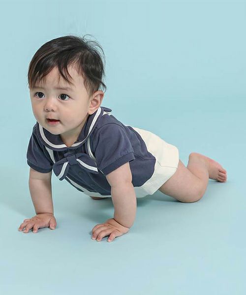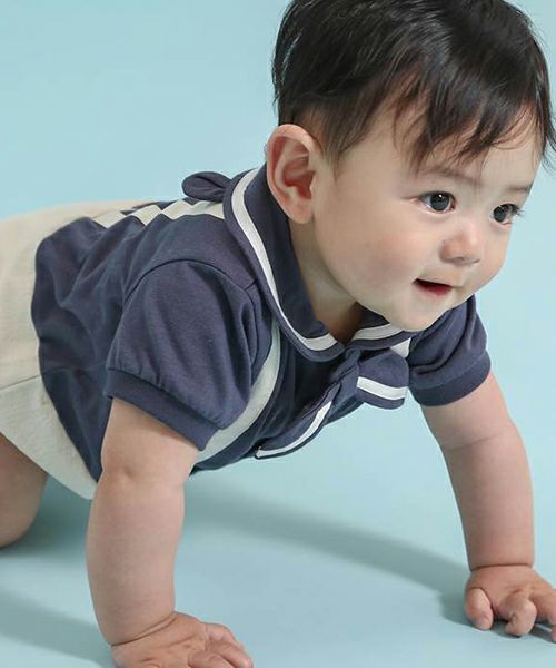 ■カラー展開:オフホワイト/ネイビーブルー モデル身長:72cm / 着用サイズ:70size ※画面上の色はブラウザや設定により、実物とは異なる場合がございます。