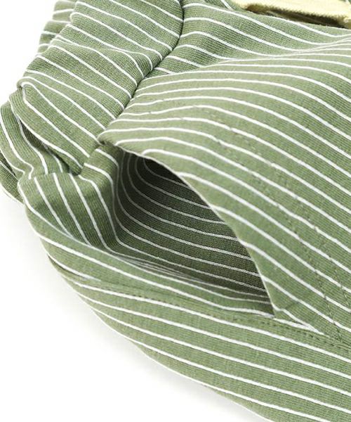■カラー展開:ブラウン/ミントグリーン ※お名前タグ付き ※前と後ろにポケットがあります。 モデル身長:76cm / 着用サイズ:80size ※画面上の色はブラウザや設定により、実物とは異なる場合がございます。