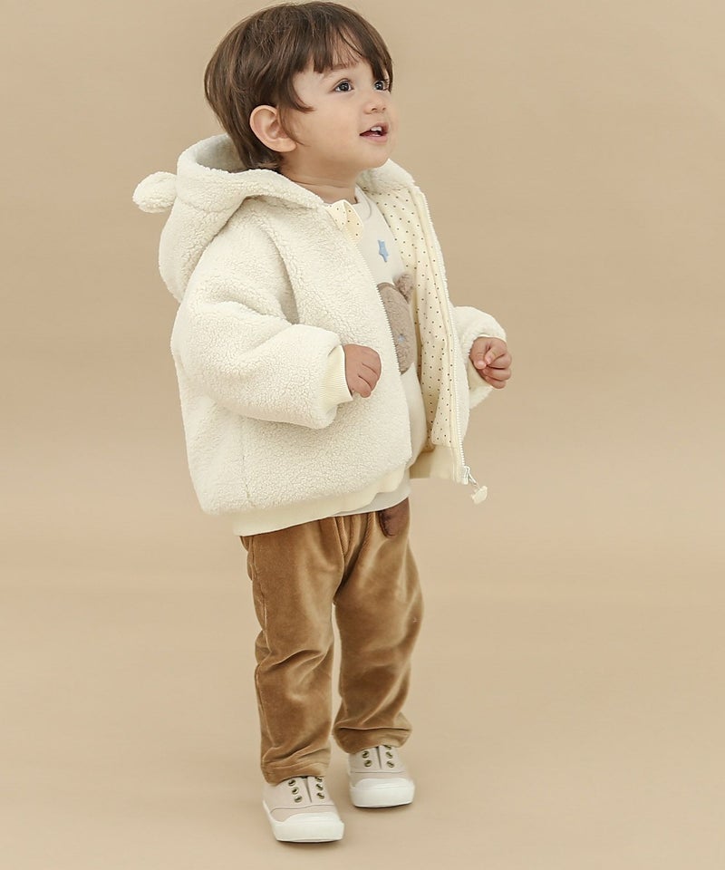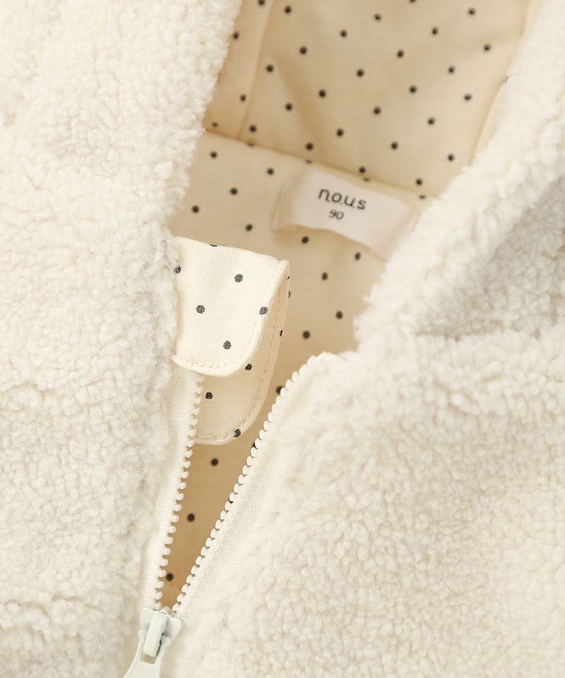 ■ブランド n.o.u.s(ノウズ) ■アイテム ブルゾン ■素材 本体表布/ポリエステル100% 本体裏布/綿100% 中綿/ポリエステル100% 袖口・裾口布/綿96%・ポリウレタン4% ボア×薄手天竺×スパンテレコ ■サイズ 70/80/90 ■洗濯表示 取扱い表示記号について