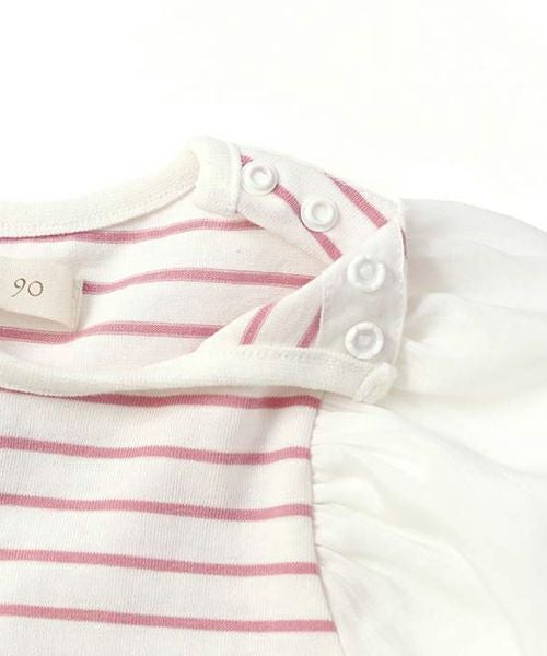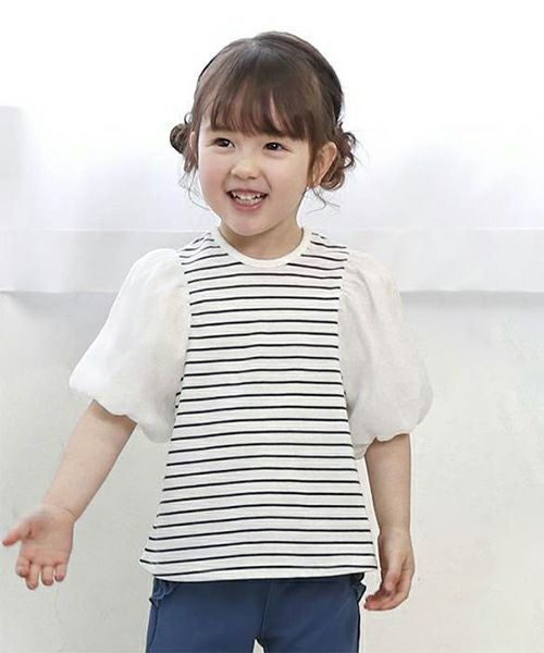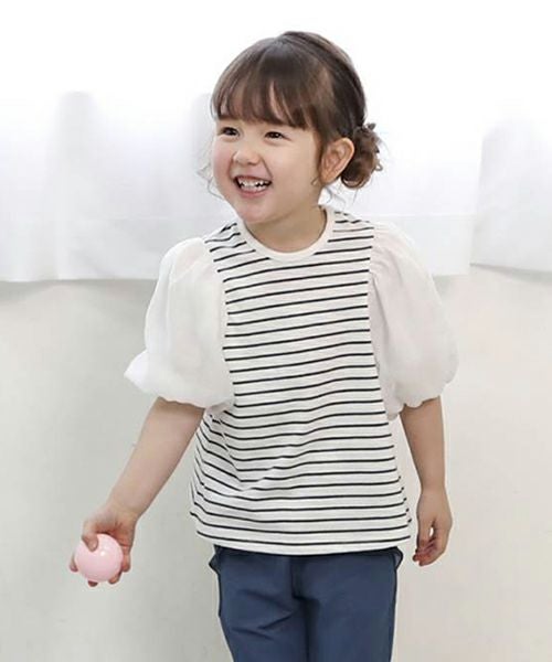 ■ブランド Biquette Club ■アイテム 半袖Tシャツ ■素材 本体/綿100% 袖/レーヨン76%・ナイロン24% 衿ぐり部分/綿95%・ポリウレタン5% 天竺ボーダー×スパンフライス×シースルー布帛 ■サイズ 80/90/95/100/110/120/130
