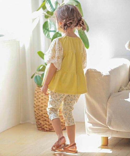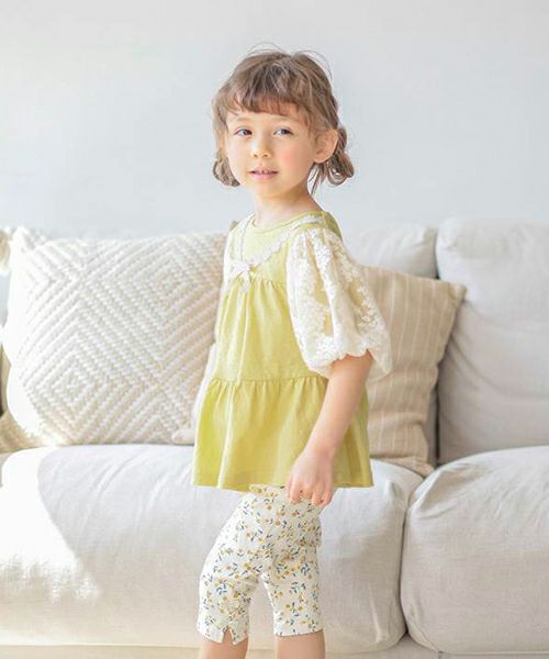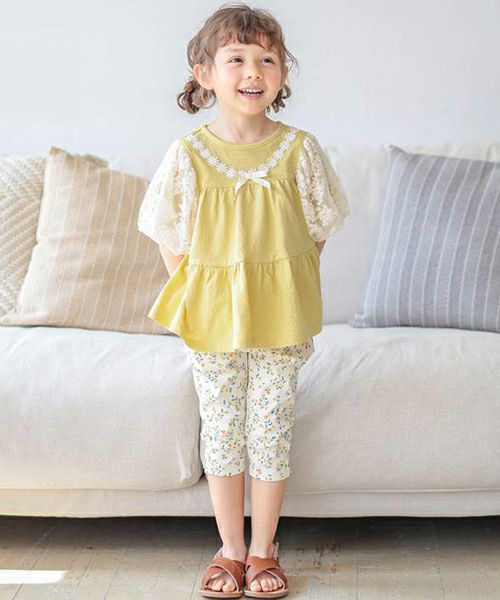 ■ブランド Biquette Club ■アイテム 7分丈パンツ ■素材 本体/綿54%・ポリエステル32%・ポリウレタン14% フリル布・リボン/綿100% ニットツイル×ローン ■サイズ 80/90/100/110/120/130/140 ■洗濯表示