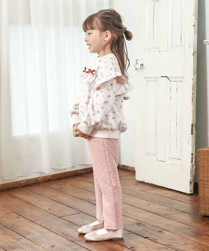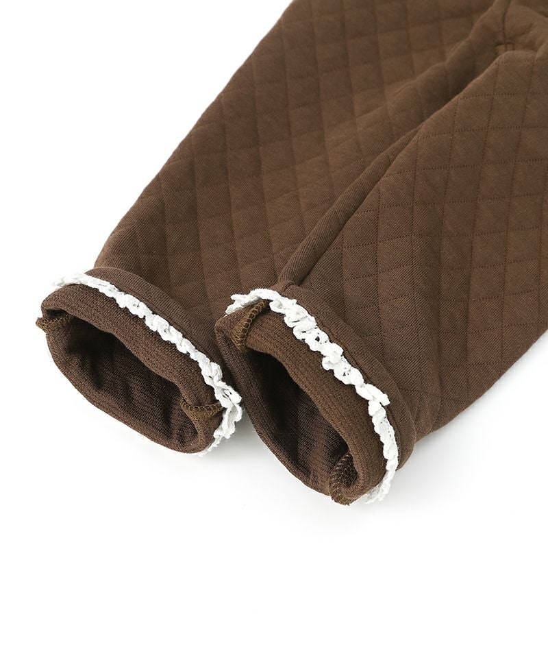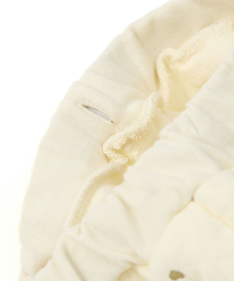 ■ブランド Biquette Club ■アイテム ロングパンツ ■素材 本体/綿35%・レーヨン34%・ポリエステル31% ウエスト部分/綿96%・ポリウレタン4% レース部分/綿96%・ポリエステル4% リボン部分/ポリエステル100% ニットキルト×スパンフライス ■サイズ 80/90/100/110/120/130/140 ■洗濯表示 取扱い表示記号について