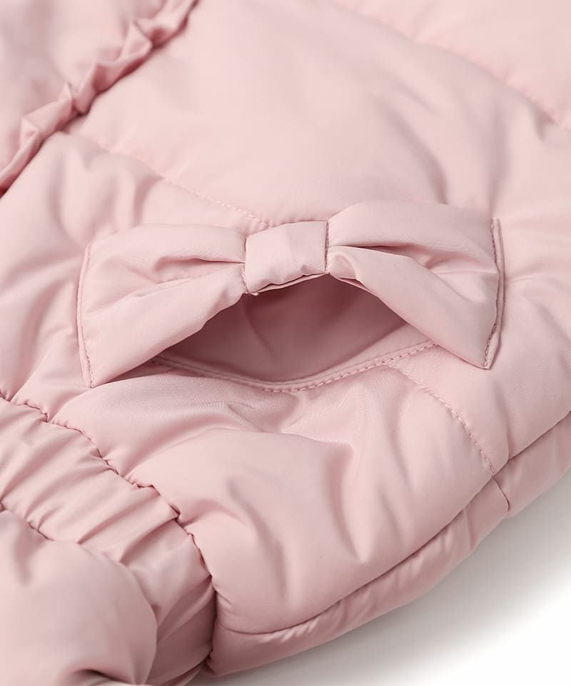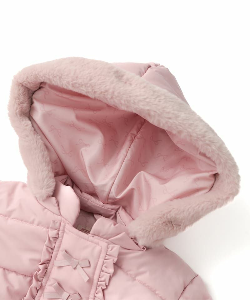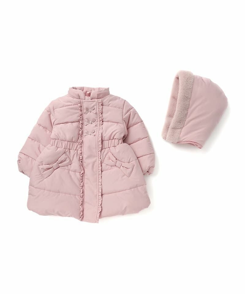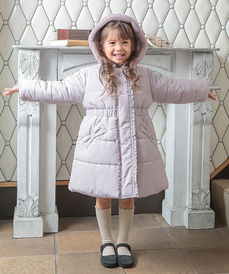 少し長めの丈のコートが欲しく、他メーカーも見色々見てこちらに決めました。フードの裏地のリボンが可愛く、ファーも付いていて大人っぽいです。 色味とデザインが最高に可愛く、そして暖かい。 そのためショッピングモールに行く際は、 子どもの服は薄めに着せて、こちらのコートでしっかり防寒して出掛けています。 どこのブランドか聞かれることも多く、めちゃくちゃ気に入ってます。 色違いのピンクも欲しいくらいです。