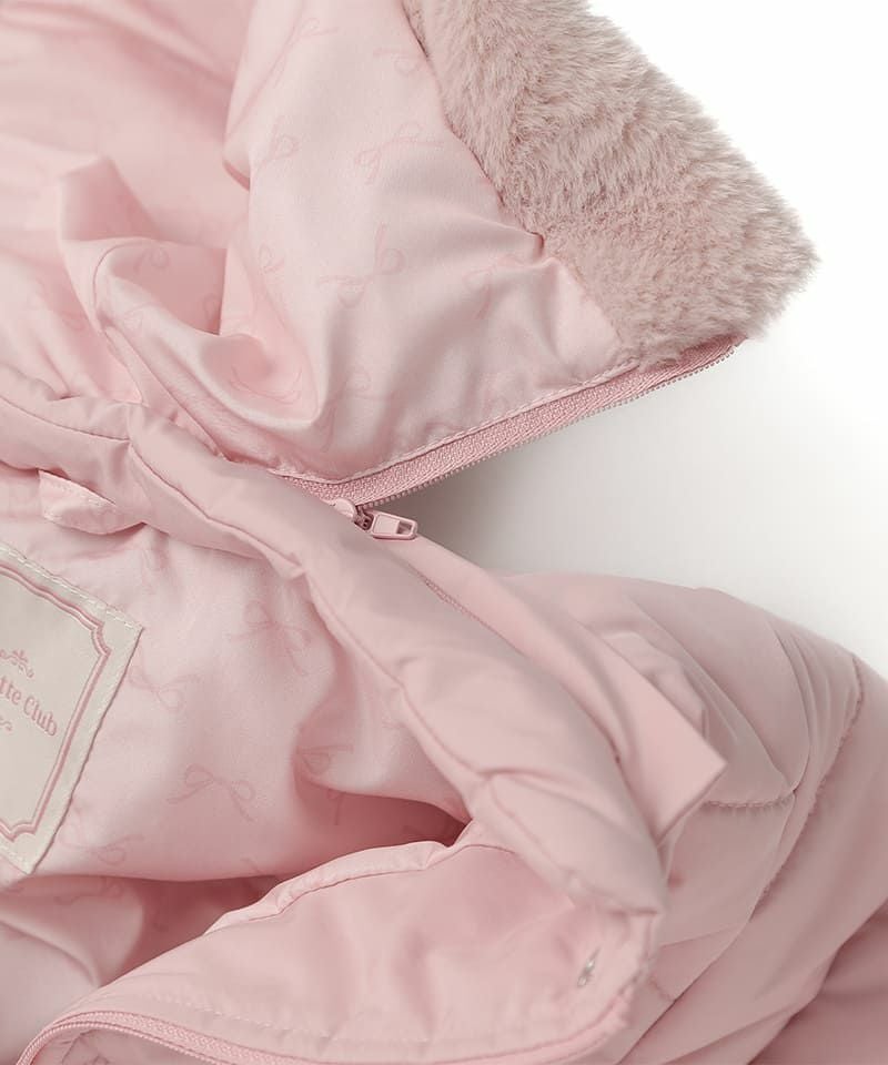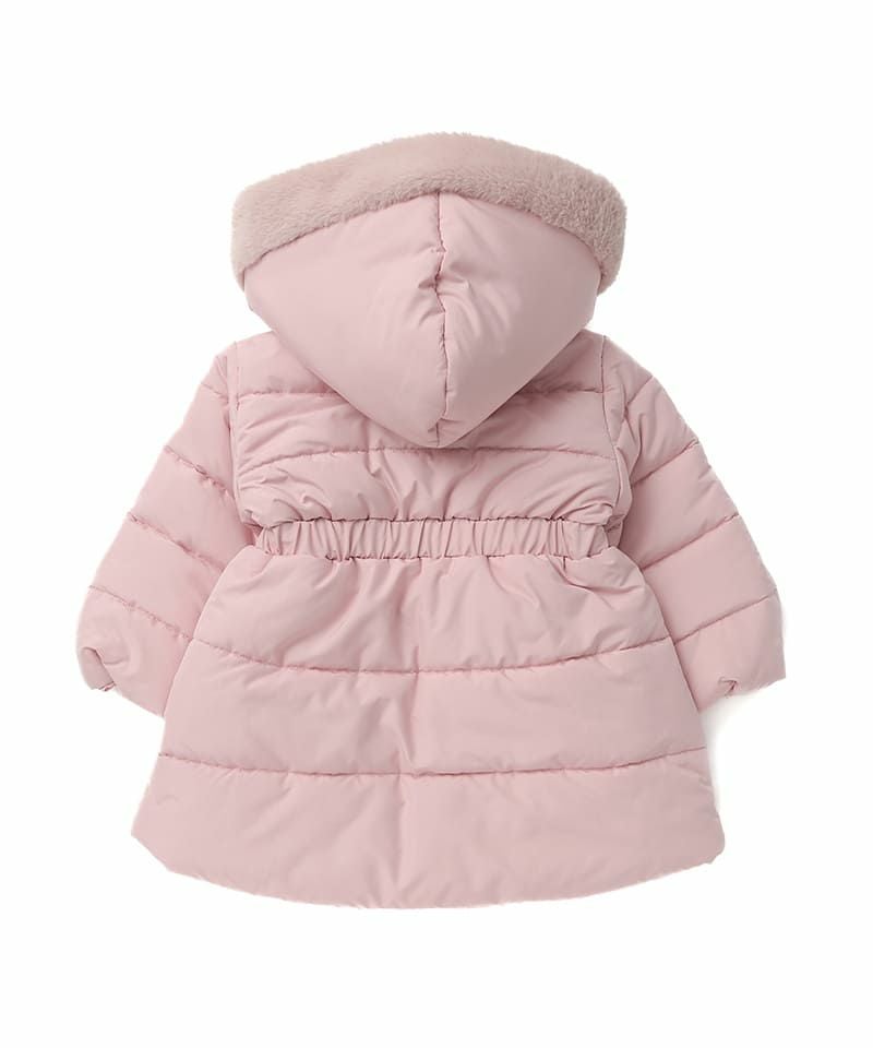 女の子らしいAラインのシルエットが上品なロングコート。おしりまで隠れる丈感で寒い日も暖かく過ごすことが出来ます。ポケットのリボンや同色合わせのフェイクファーをあしらったフードがガーリーなポイント。はっ水加工を施したタフタ素材を採用しているのでデイリーユースにもおすすめ。フードはシーンによって取り外し可能です。