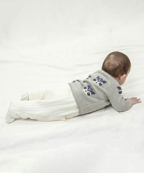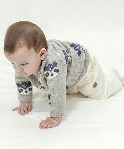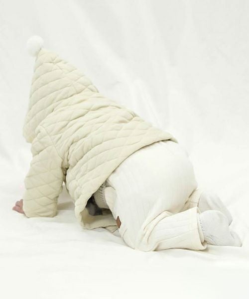 ■カラー展開:アイボリー/チャコール ※前にポケットがあります。 モデル身長:68cm / 着用サイズ:70size ※画面上の色はブラウザや設定により、実物とは異なる場合がございます。