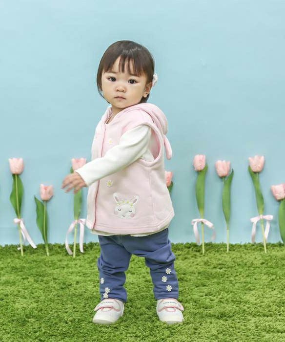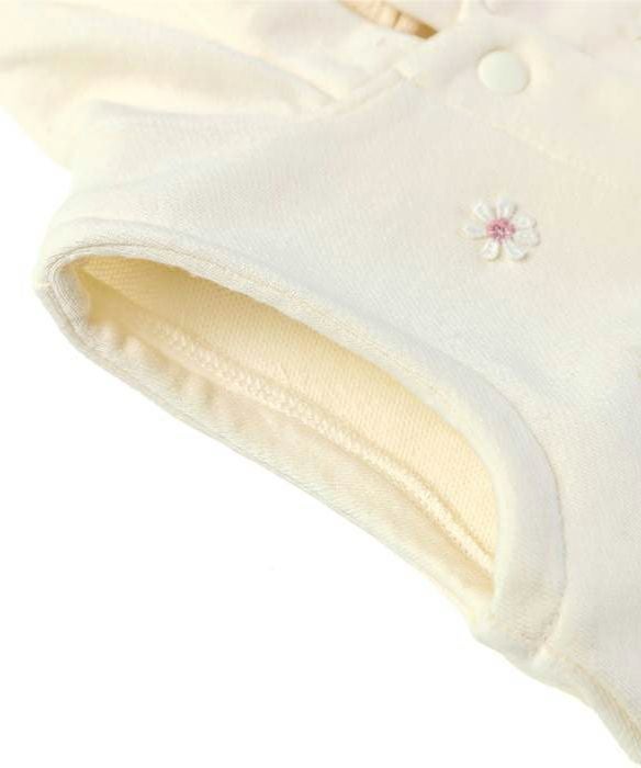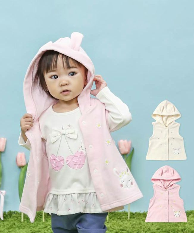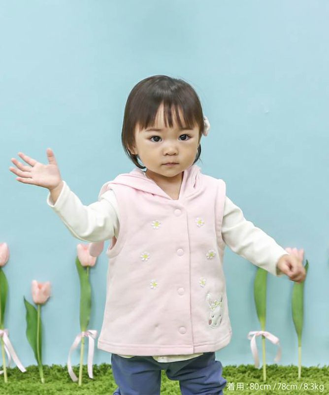 ■ブランド coeur a coeur ■アイテム ベスト ■素材 本体/綿100% 花レース部分/ポリエステル100% ソフト裏毛×カラー花レース ■サイズ 80/90/95/100