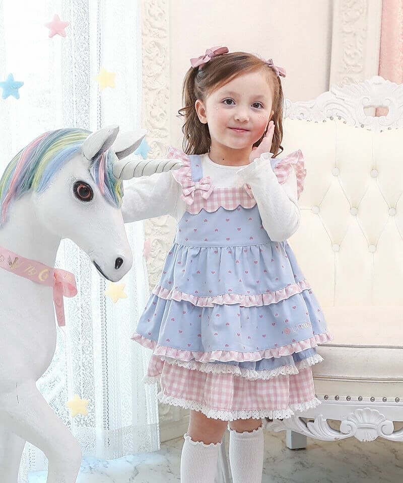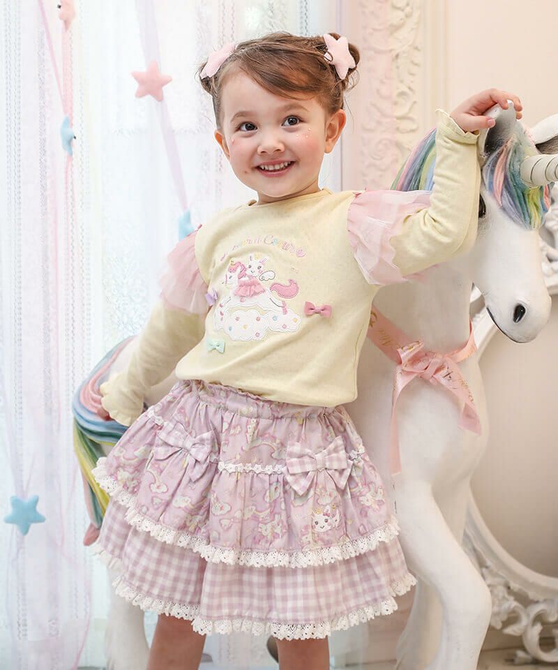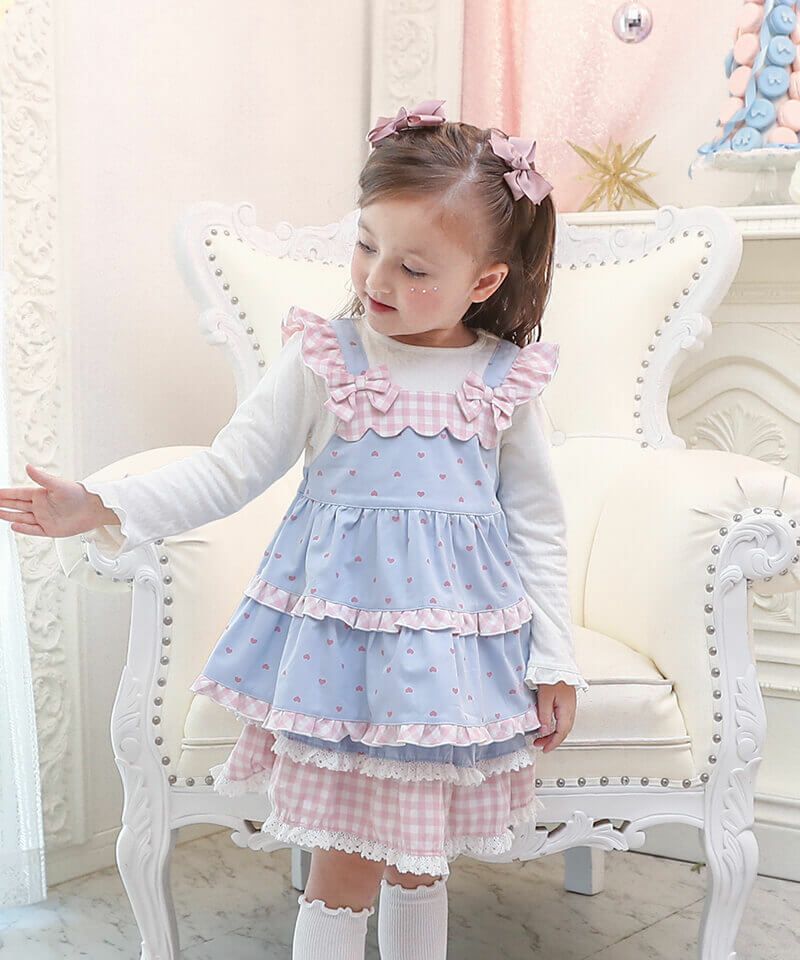 ■カラー展開:ピンク/サックス ※スカート丈は裾レース部分をのぞいた長さになります。 ※お名前タグ付き モデル身長:101cm/着用サイズ:100size/サックス モデル身長:98cm/着用サイズ:100size/ピンク ※画面上の色はブラウザや設定により、実物とは異なる場合がございます。
