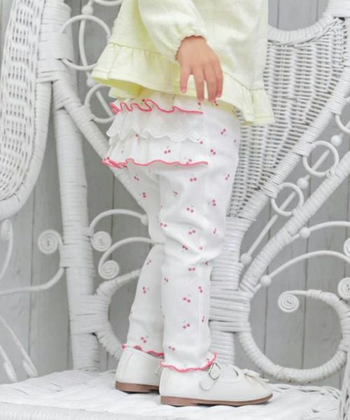 ■ブランド coeur a coeur ■アイテム スパッツ・レギンス ■素材:本体/綿94%・ポリウレタン6% レース部分/綿100% ストレッチリブテレコ×カットワークレース ■サイズ 70/80/90/100