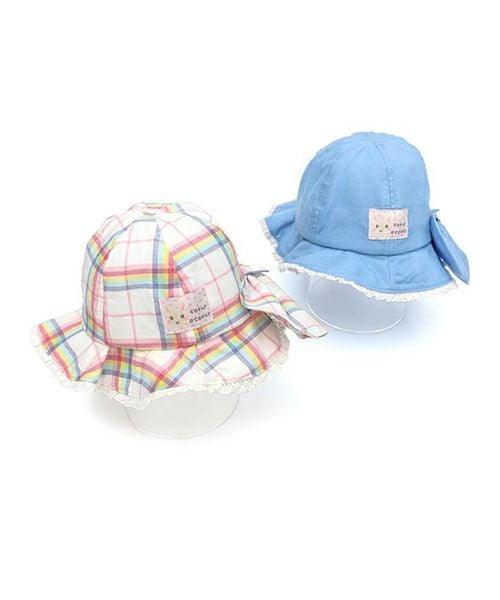 ■ブランド coeuracoeur ■アイテム 帽子 ■素材 レース部分/綿95%・ポリウレタン5% 汗取りテープ部分/ポリエステル83%・綿17% オフホワイト…本体/綿100% ブルー…表本体/綿63%・レーヨン37% 裏本体/綿100% チェック×ダンガリー×ストレッチトーションレース×ローン ■サイズ 46/48/50