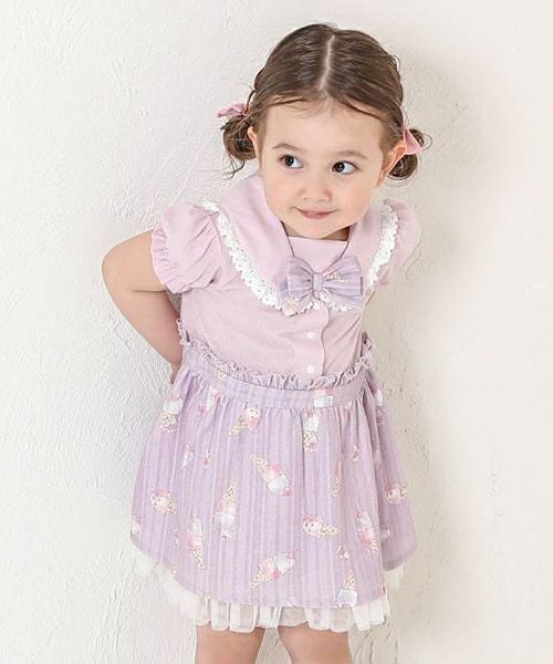 ■カラー展開:ラベンダー/ピンク ※全サイズ前あき(スナップ) ※お名前タグ付き モデル身長:91cm / 着用サイズ:90size ※画面上の色はブラウザや設定により、実物とは異なる場合がございます。