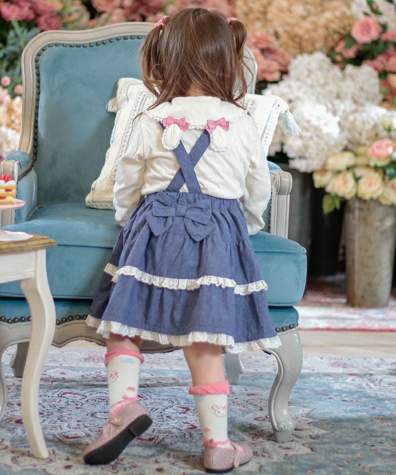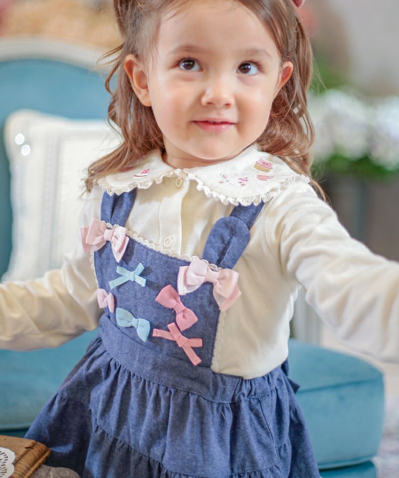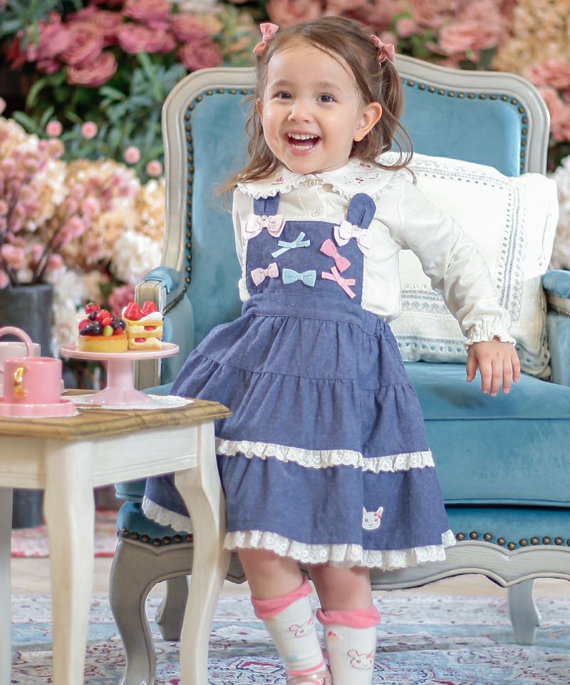 ■カラー展開:ピンク/ネイビーブルー ※お名前タグ付き モデル身長:93cm / 着用サイズ:100size ※画面上の色はブラウザや設定により、実物とは異なる場合がございます。 ※お名前タグ付き ※肩紐は調節可能です(ボタン) ※胸当て部分は取り外し可能です(ボタン)