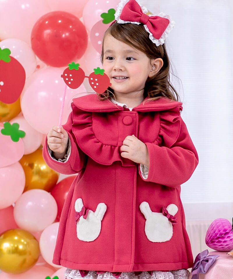 ■ブランド coeur a coeur ■アイテム コート ■素材 本体表布・裏布・中綿・アップリケ部分/ポリエステル100% 後フリル部分…基布/ナイロン100% 刺繍糸/綿100% フリース×ソフトボア ■サイズ 80/90/100 ■洗濯表示 取扱い表示記号について