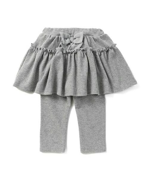 ひらひらとフレアのシルエットがキュートなスカート付きレギンス♪後にはリボンを飾ってさらに可愛さをプラスしました。優しい肌触りのスムース起毛素材はあたたかく、ストレッチ入りではき心地も動きやすさも◎
