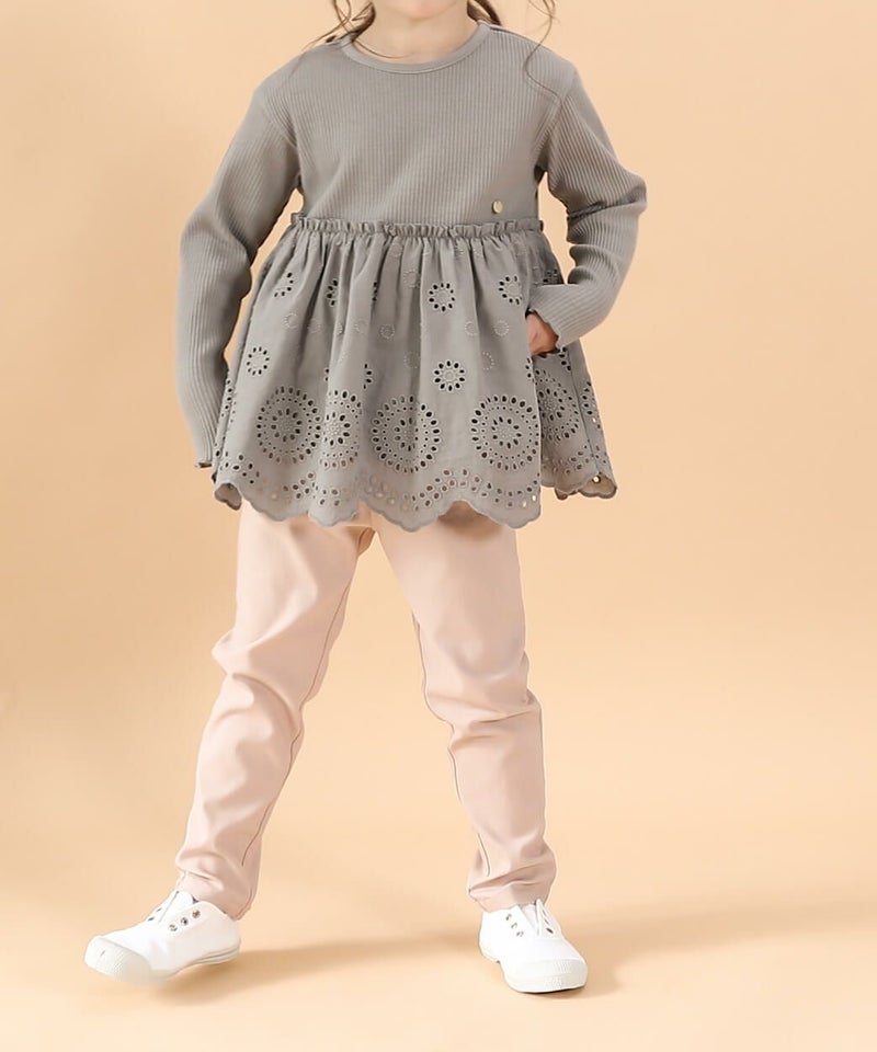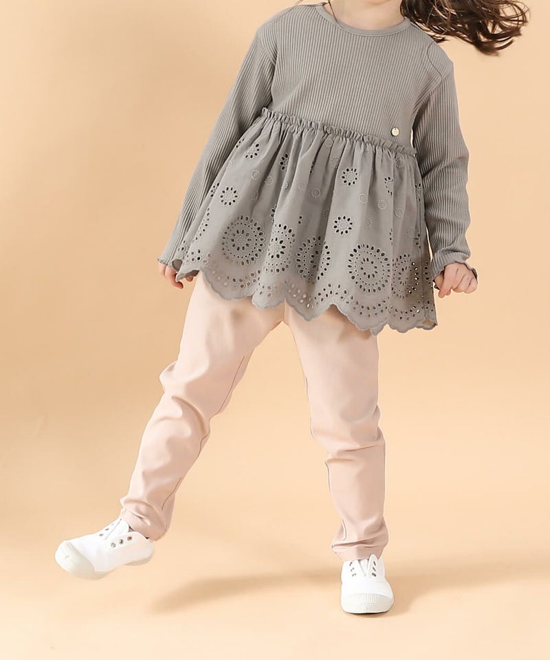 ■ブランド n.o.u.s ■アイテム ロングパンツ ■素材:本体/レーヨン76%・ナイロン21%・ポリウレタン3% ウエストフリルベルト布・リボン布部分/綿100% 2WAYストレッチ×ビエラ ■サイズ 80/90/100/110/120/130/140