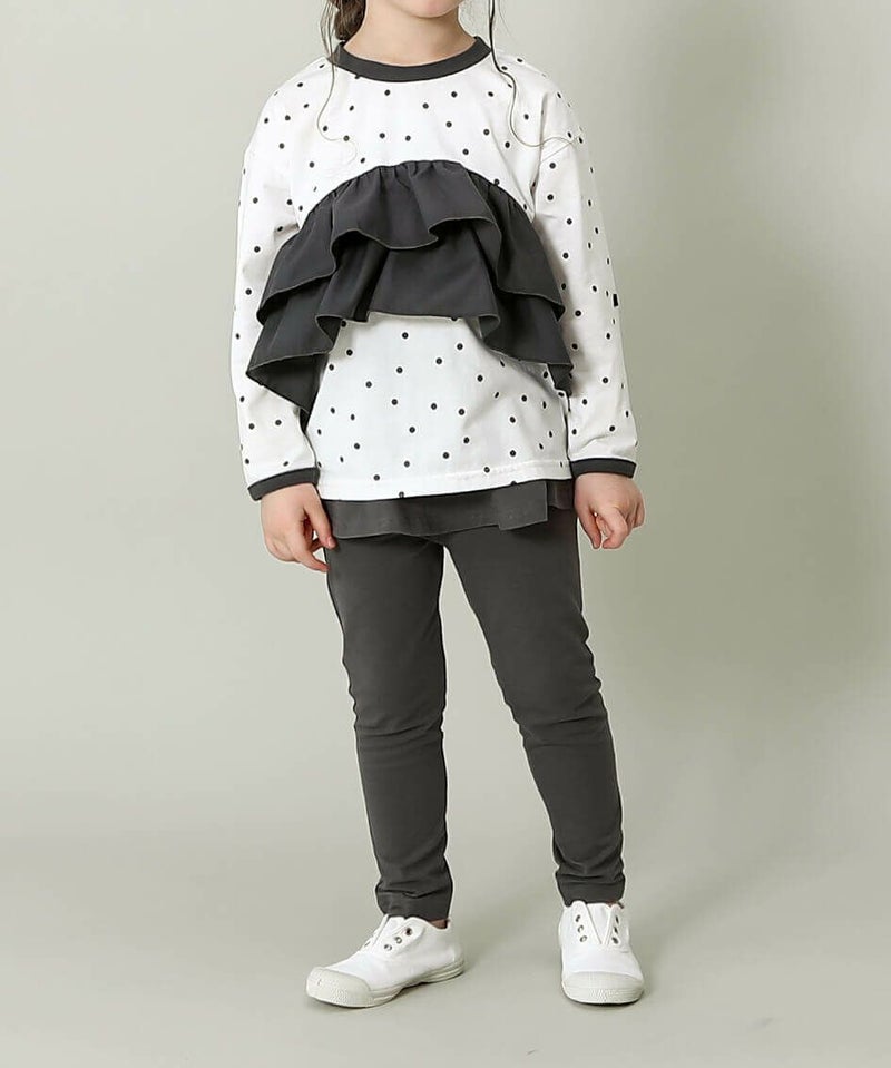 コットンフライスのスカート付きレギンス。長めのトップスからスカート部分をちらっと覗かせても◎水玉模様でn.o.u.sらしさをプラス!