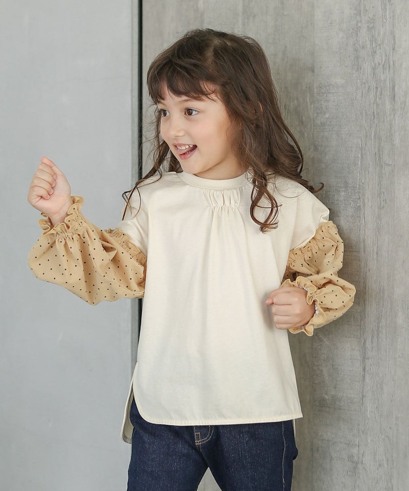 ■ブランド n.o.u.s ■アイテム 長袖Tシャツ ■素材 本体/綿100% チャコール…袖部分/綿50%・ポリエステル50% 襟ぐり部分/綿96%・ポリウレタン4% クリーム…襟ぐり部分/綿96%・ポリウレタン4% シルケット天竺×布帛 ■サイズ 80/90/100/110/120/130/140 ■洗濯表示 取扱い表示記号について